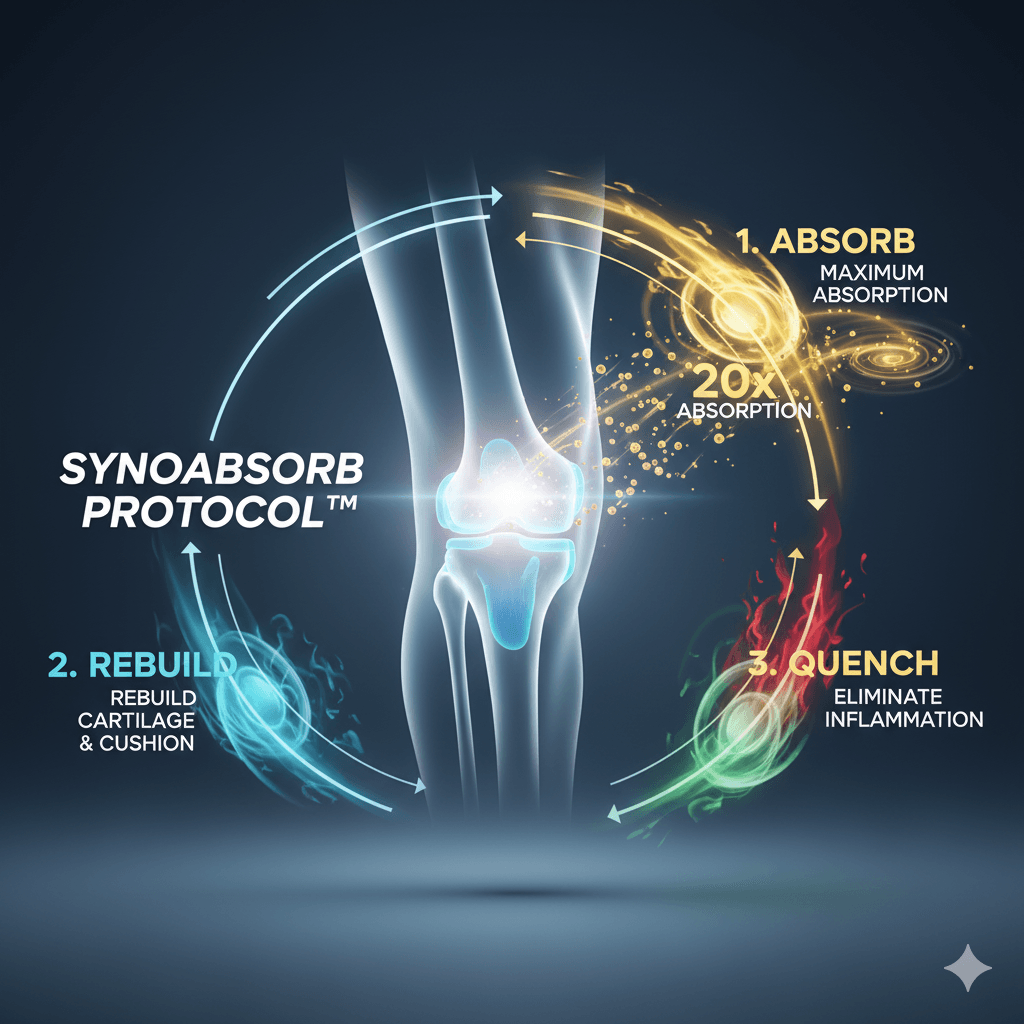 SynoviaX uses the groundbreaking SynoAbsorb Protocol™ — a 3-stage system engineered to hit every driver of your pain simultaneously: